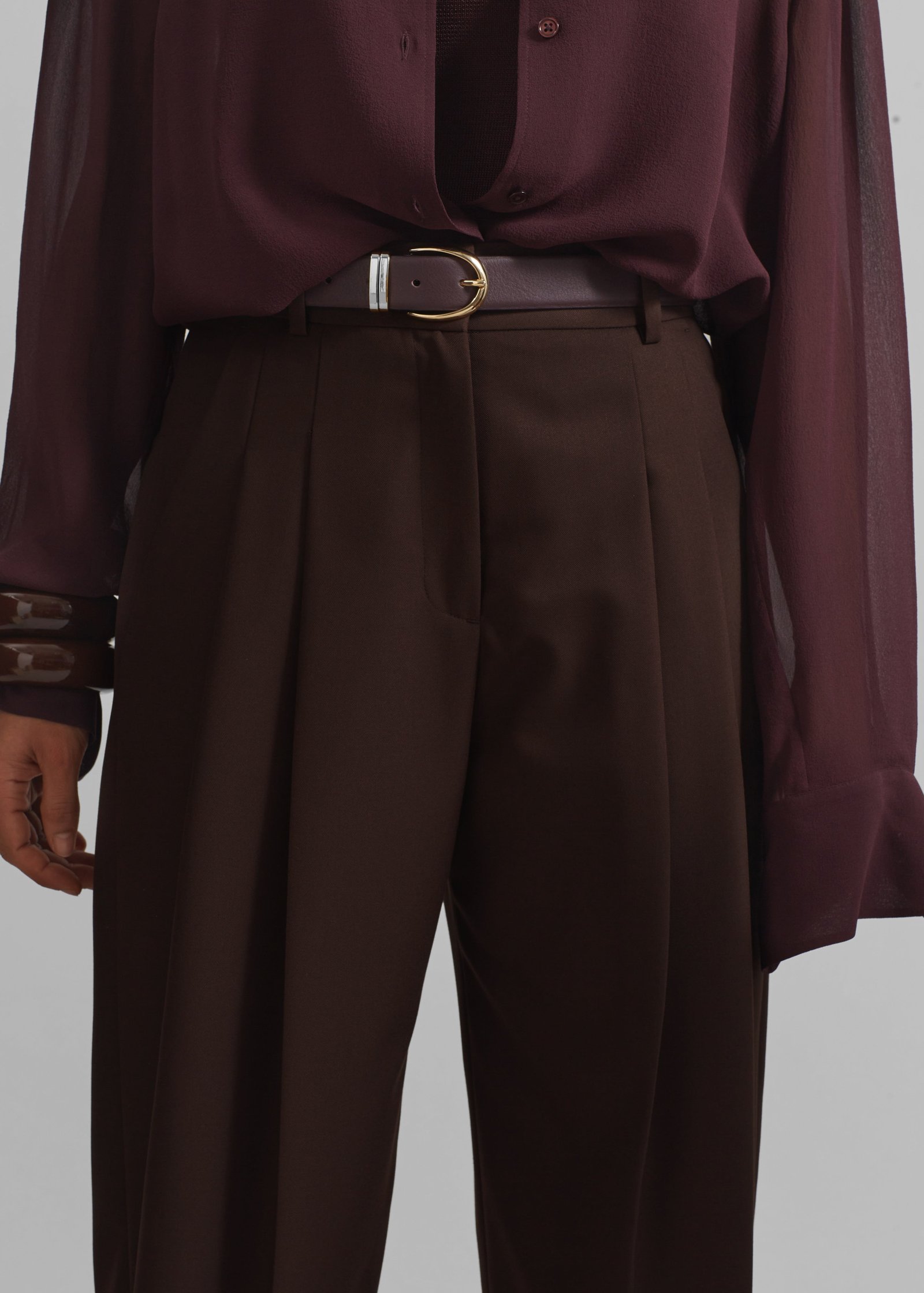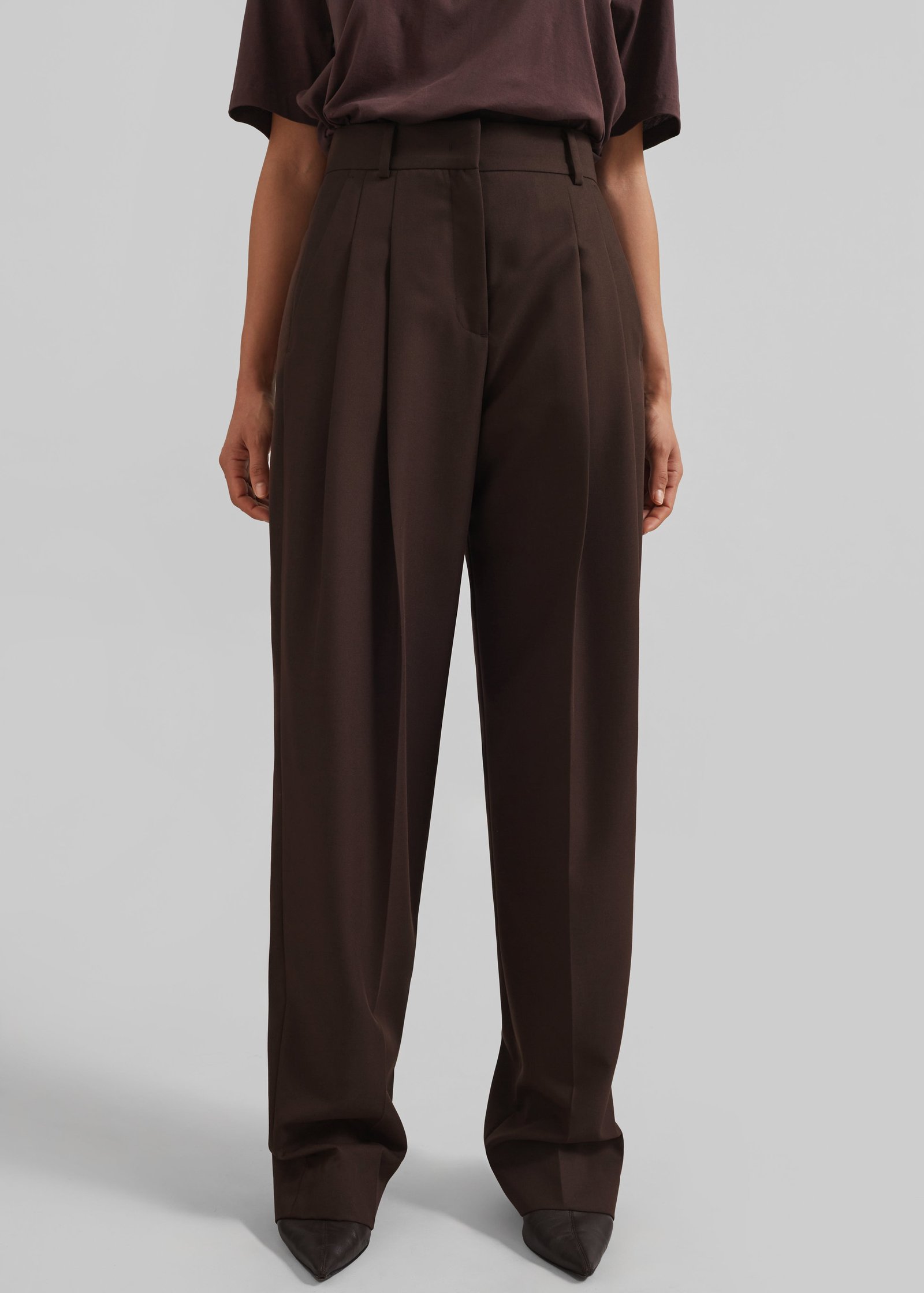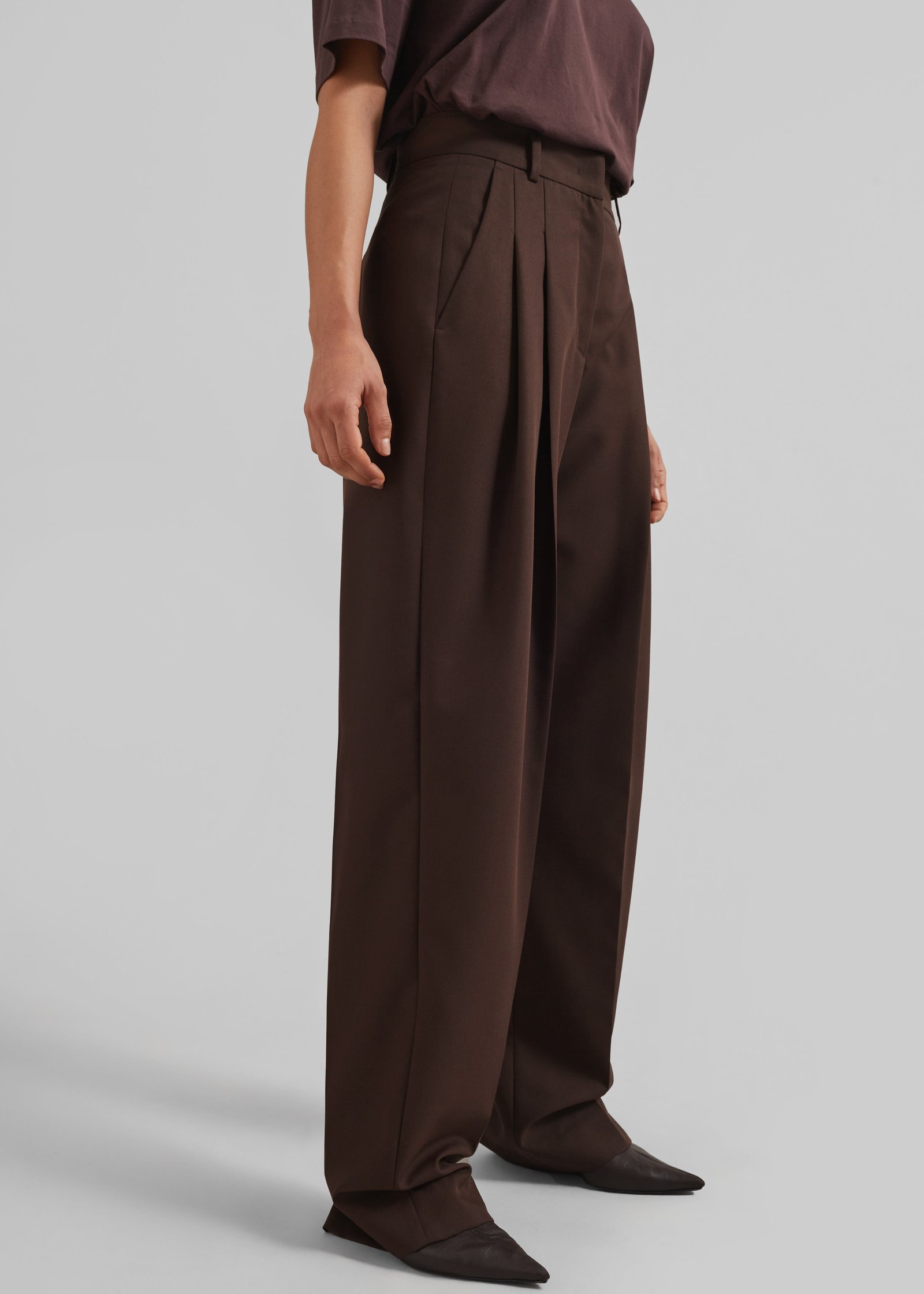 Gelso Pleated Twill Trousers – Brown