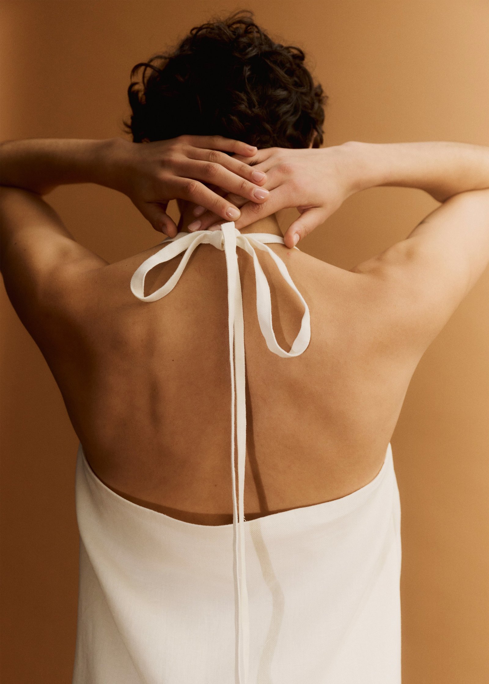 Be the first to review “Matin Twill Halter Mini Dress – Natural”