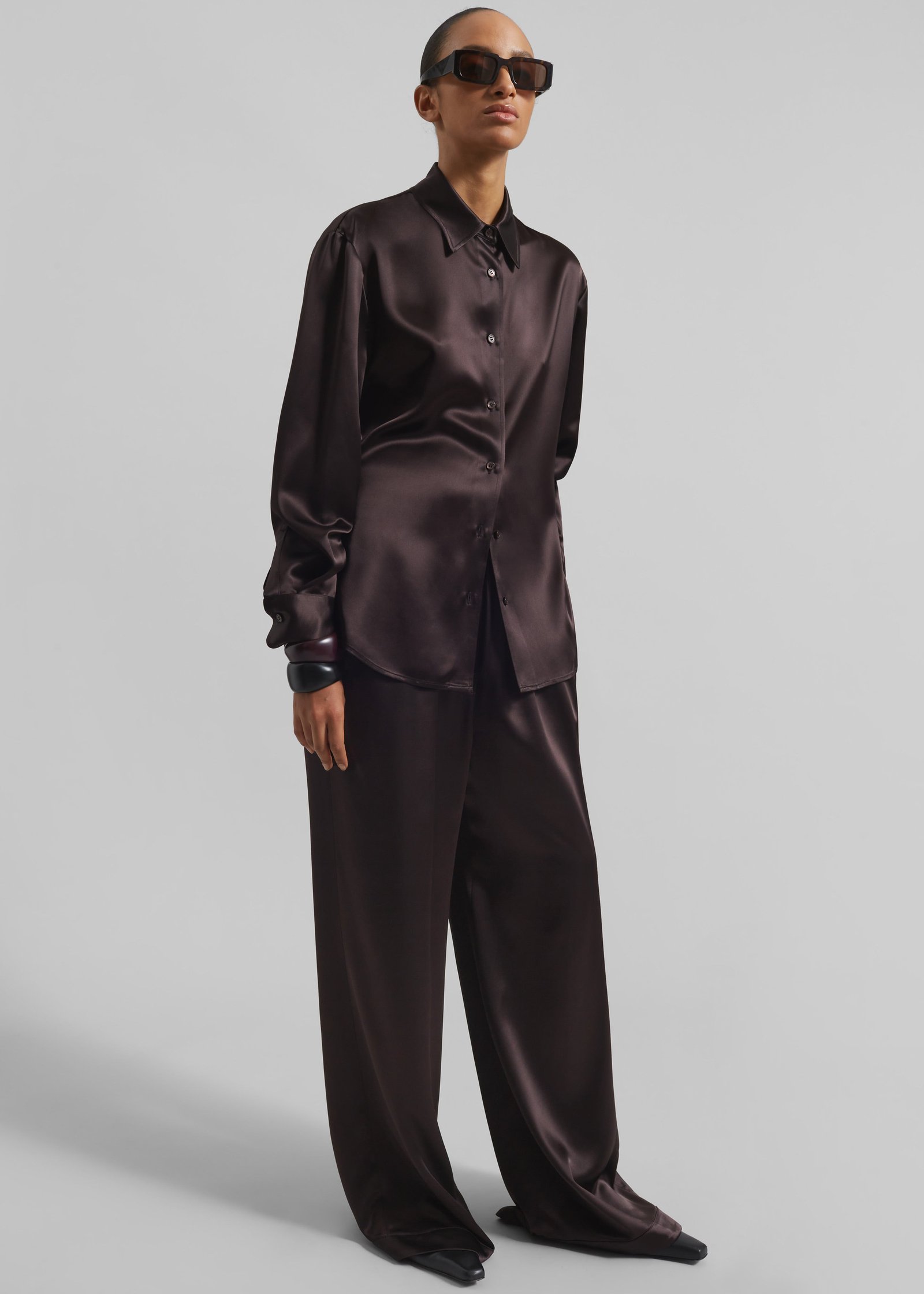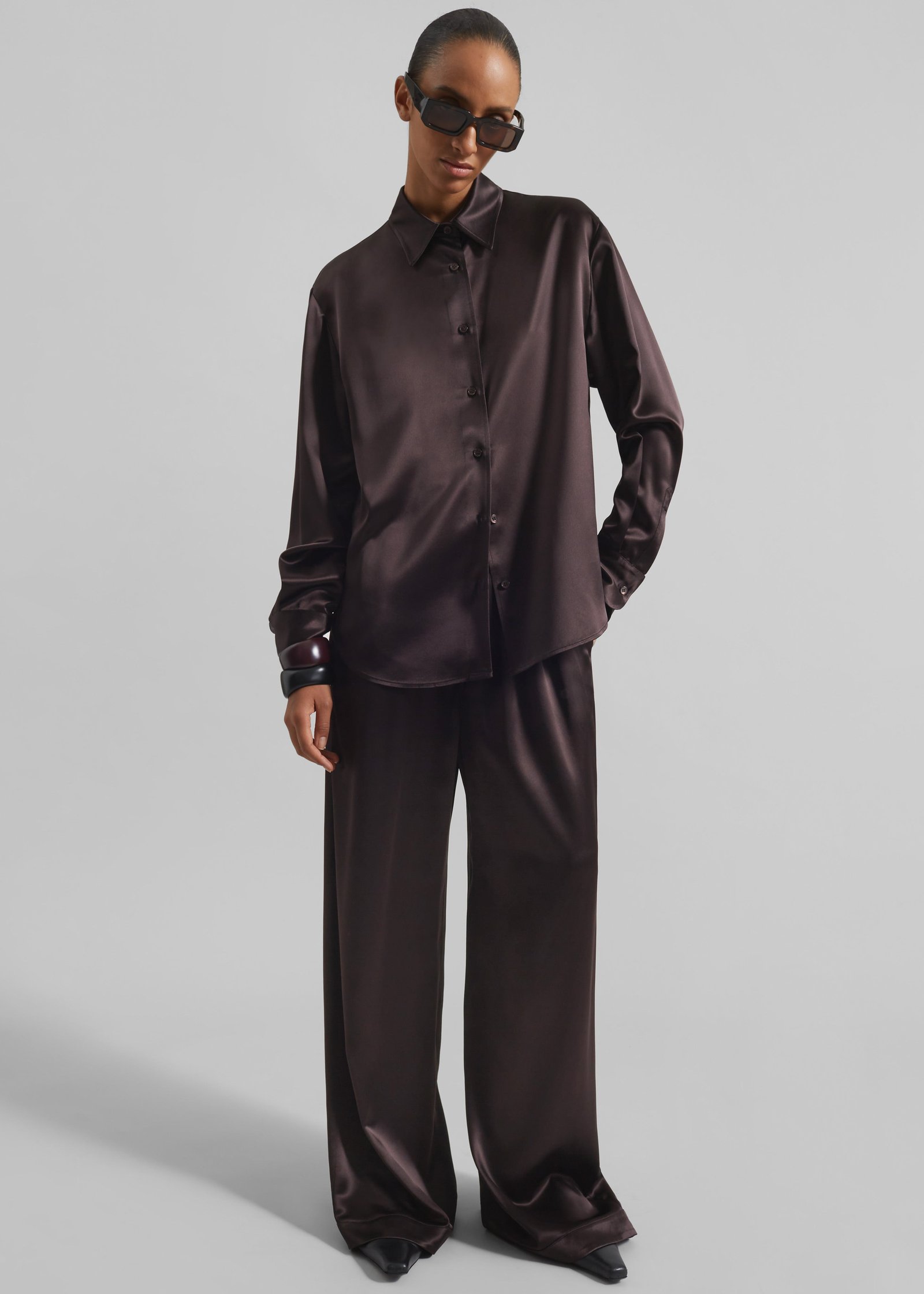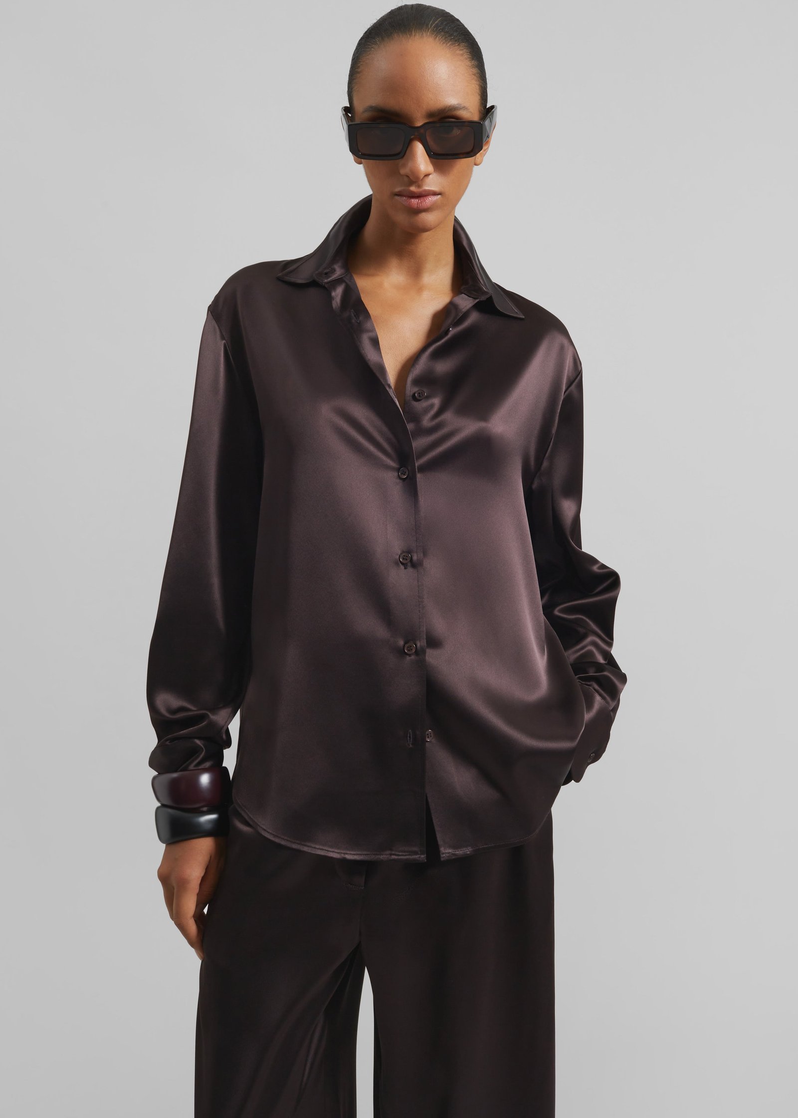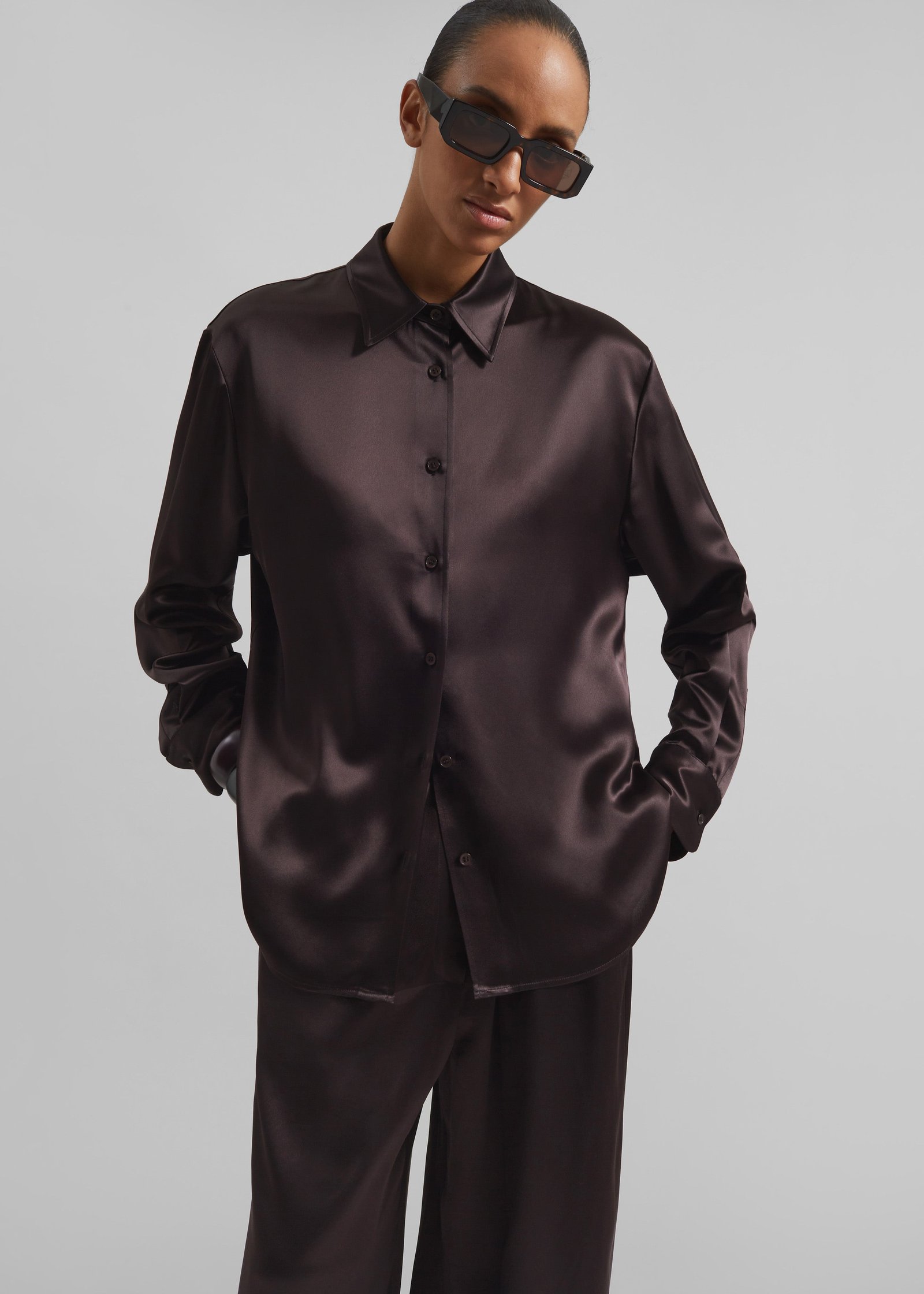 Peri Satin Shirt – Brown