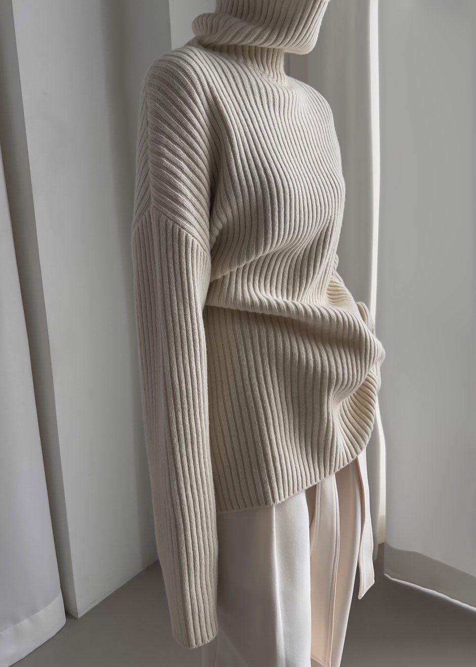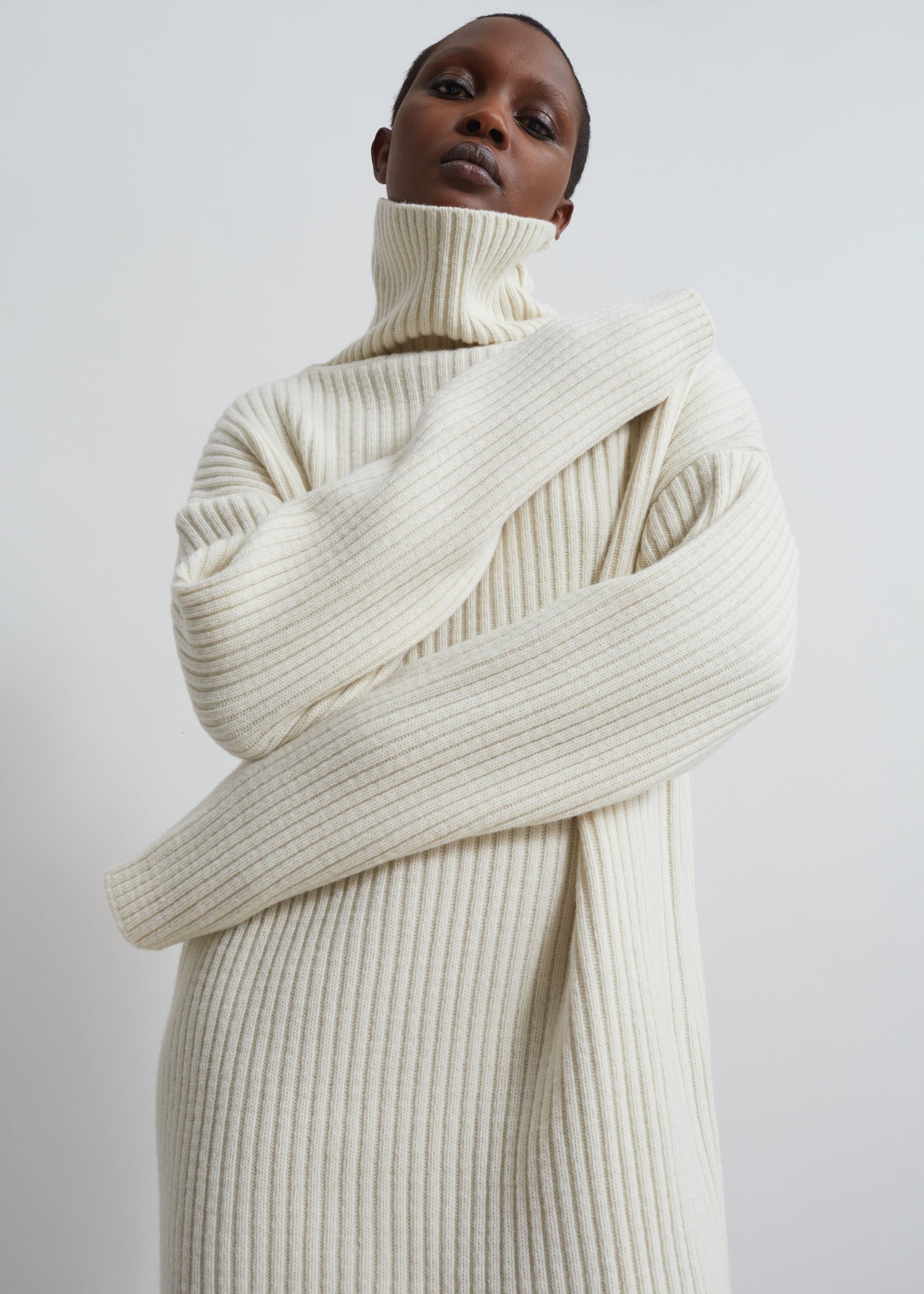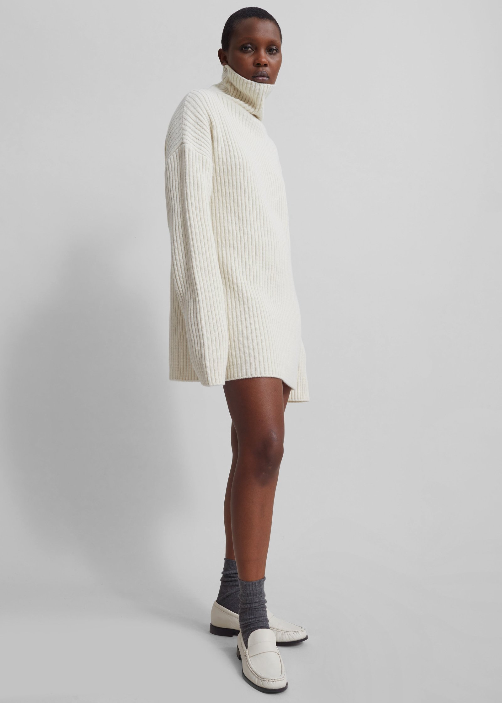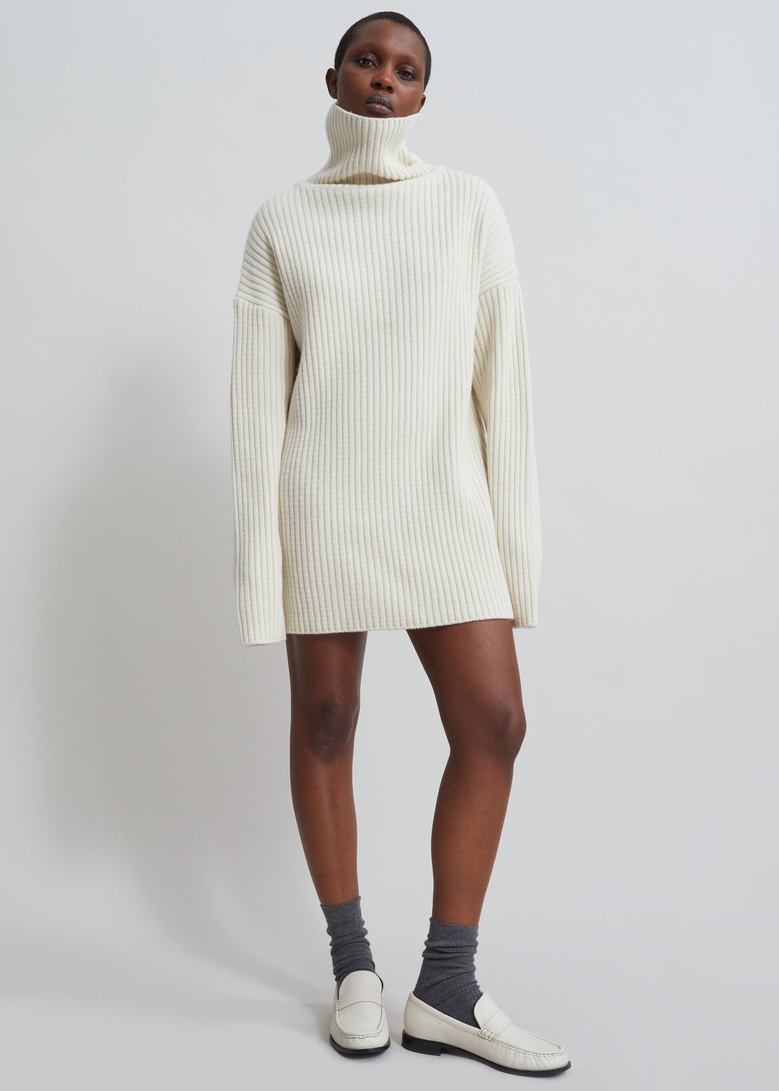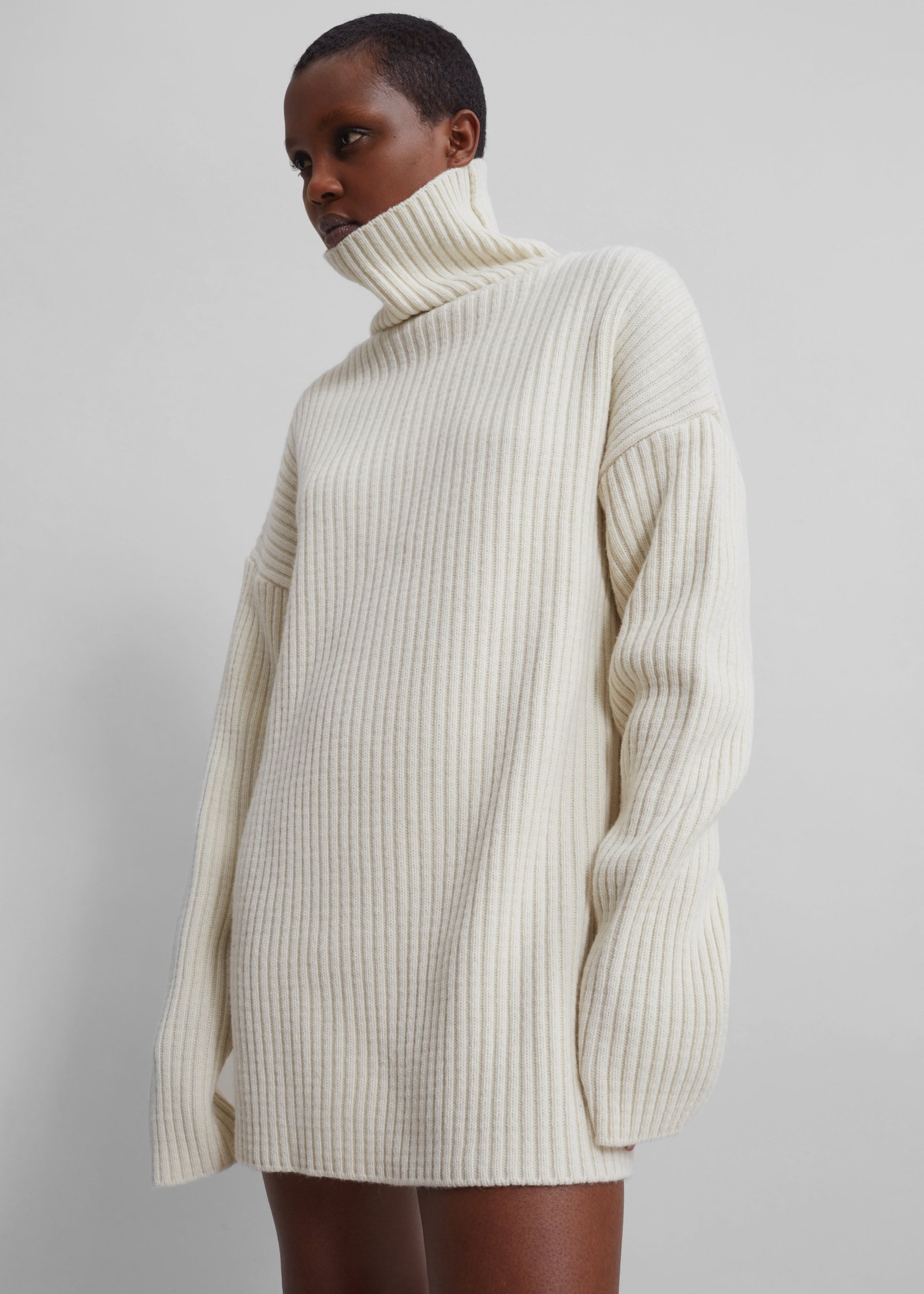 Thelma Ribbed Sweater Dress – Cream